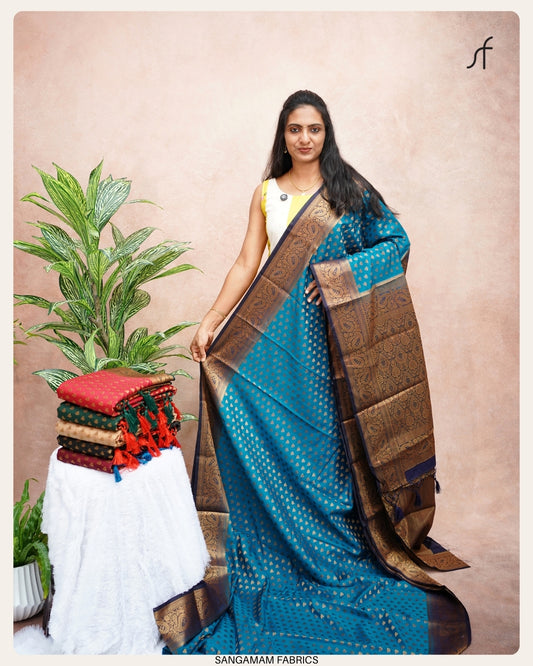 From humble beginnings to a thriving powerhouse, Sangamam Fabrics has come a long way. Today, we continue to serve the trendy demands of the new generation, seamlessly blending tradition with innovation, both online and offline.