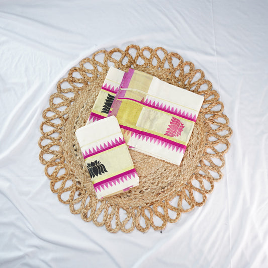 LOTUS PRINTED KERALA COTTON SET MUNDU