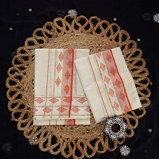 KERALA COTTON SET MUNDU WITH PRINTED BLOUSE