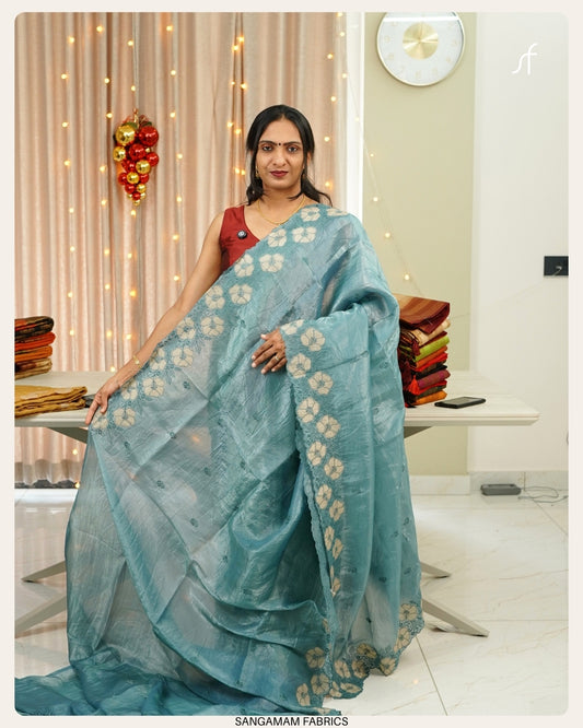 FLORAL APPLIQUE DETAILED ORGANZA SAREE