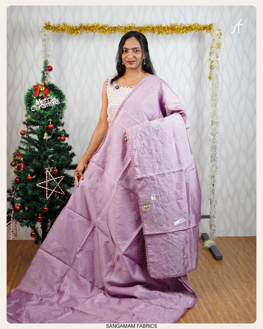 EMBROIDERY DETAILED SEMI TUSSAR SILK SAREE