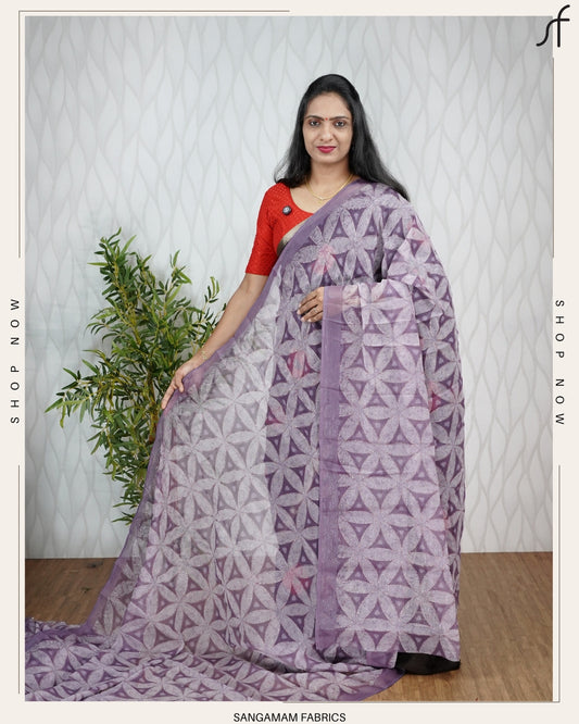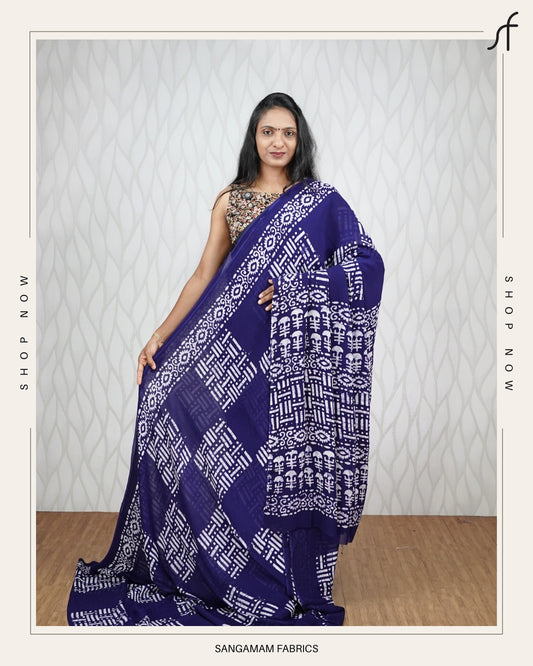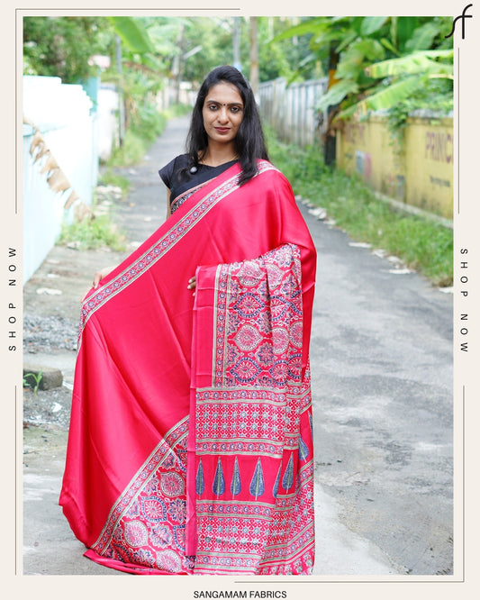 AJRAKH PRINTED TURKISH CHIFFON SAREE