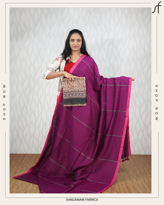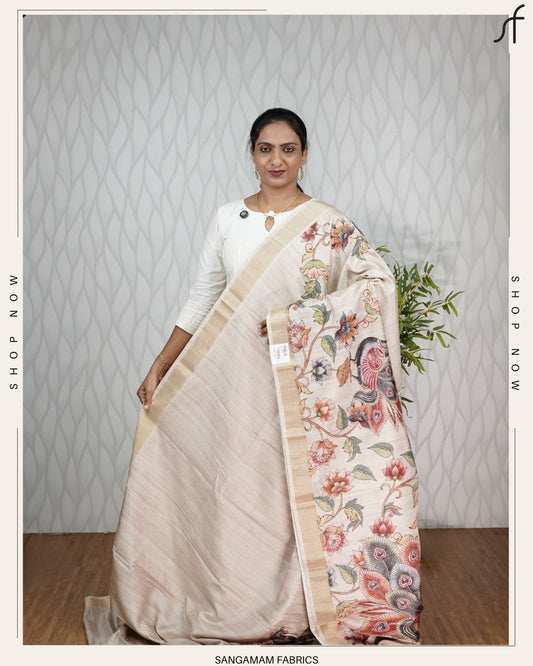 KALAMKARI PRINTED SEMI TUSSAR SILK SAREE