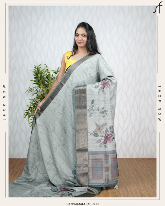 DIGITAL FLORAL PRINTED TUSSAR SILK SAREE
