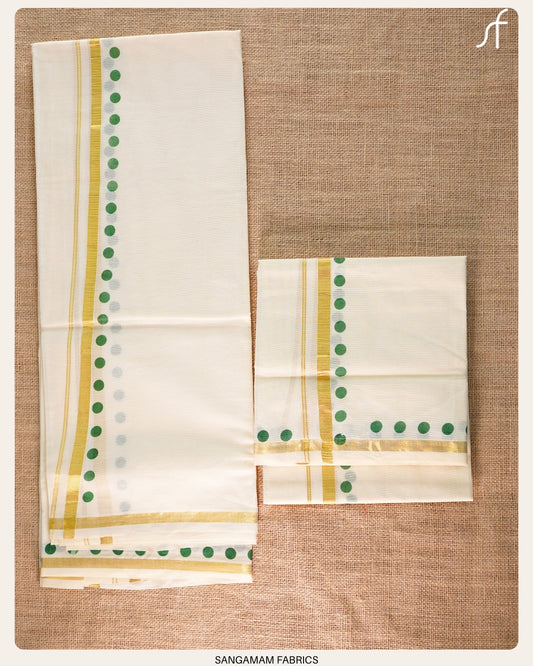 PRINTED KERALA COTTON SET MUNDU WITH BLOUSE