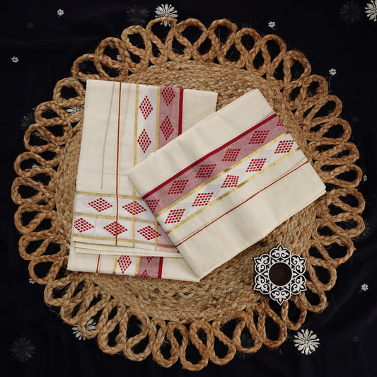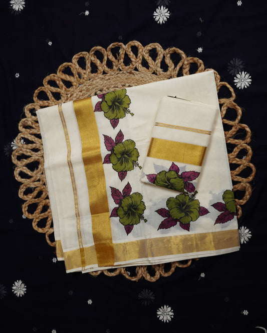 KERALA COTTON SET MUNDU CHEMPARUTY PRINT