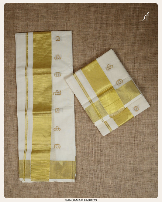 COTTON SET MUNDU AKSHARAMALA EMBROIDERY SET MUNDU