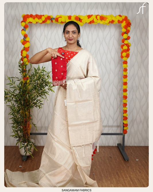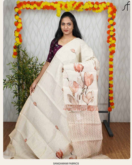KERALA DOUBLE MUNDU CREEM KASAV FANCY PRINT
