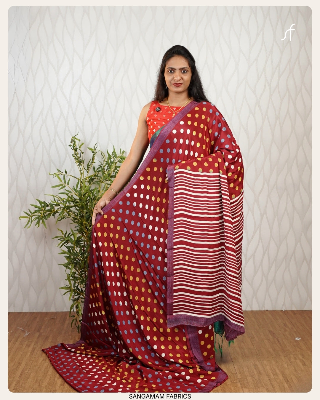 CLASSIC POLKA DETAILED SEMI MODAL SILK SAREE