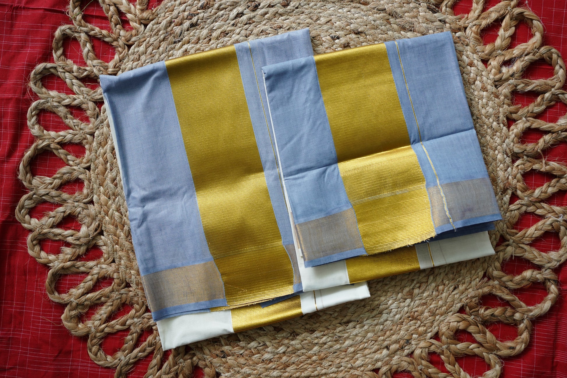 TRADITIONAL KERALA SETMUNDU: POWDER BLUE