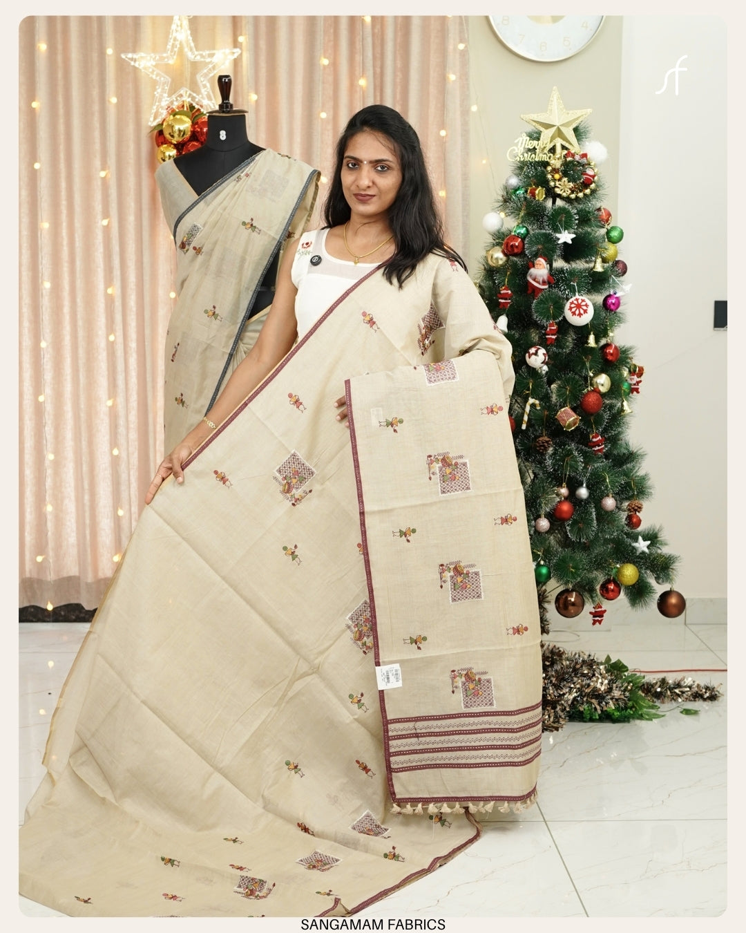 SEMI CHANDERI SILK EMBROIDERY SAREE